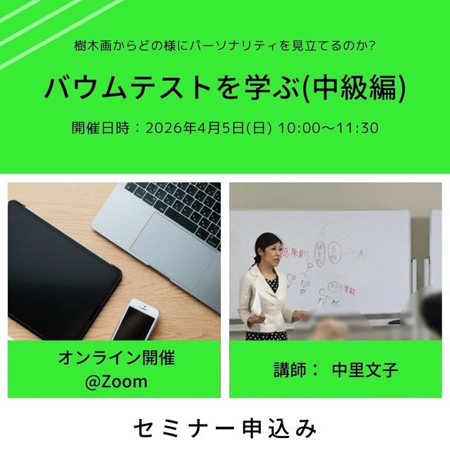 【セミナー申込み】バウムテストを学ぶ(中級編)(2026年4月5日(日) 10:00〜11:30)