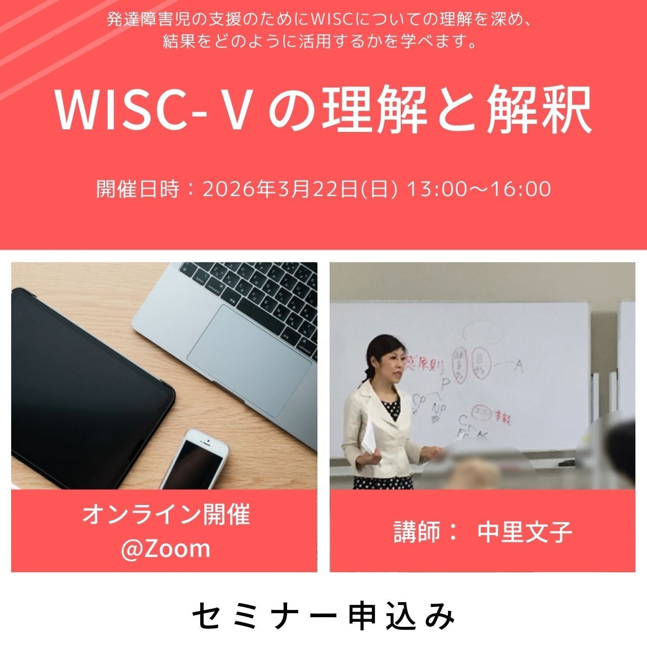 【セミナー申込み】WISC-Ⅴの理解と解釈(2026年3月22日(日) 13:00〜16:00)